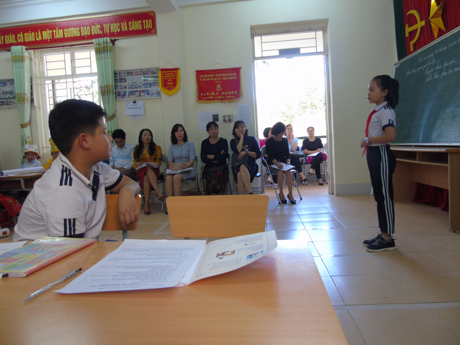 Phát biểu chỉ đạo tại buổi sinh hoạt chuyên đề, đồng chí Hoàng Bích Huệ - Chuyên viên Phòng Giáo dục và Đào tạo đã đánh giá cao việc triển khai Ra đề mở đối với phân môn Tập làm văn của phòng các nhà trường trong thành phố trong ba năm qua, việc tổ chức HĐNGLL là tiết dạy các hoạt động trải nghiệm, giáo dục kỹ năng sống cho học sinh là tiền đề cho việc dạy học giáo dục phổng thông 2018. Qua 2 tiết chuyên đề mong các nhà trường phát huy và vận dụng linh hoạt vào trong giảng dạy.