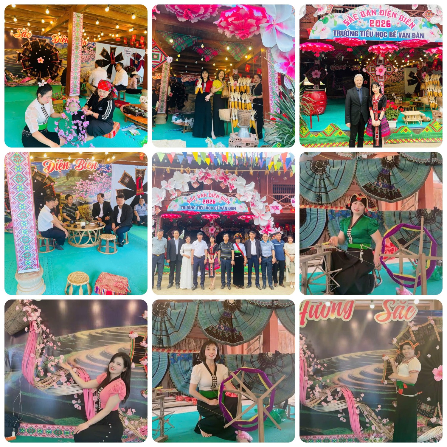 Đặc biệt, gian hàng của Trường Tiểu học Bế Văn Đàn vinh dự được đón tiếp các đồng chí lãnh đạo đến tham quan, động viên: Đ/c Nguyễn Minh Phú – Phó Chủ tịch UBND tỉnh; đ/c Nguyễn Quang Hưng – Bí thư Đảng ủy phường Điện Biên Phủ; đ/c Phạm Công Chinh – Phó Chủ tịch UBND phường Điện Biên Phủ cùng các đ/c lãnh đạo các tỉnh. Các đồng chí đã dành thời gian tham quan, ghi nhận sự tâm huyết và sáng tạo của tập thể cán bộ, giáo viên và học sinh nhà trường trong việc tái hiện không gian văn hóa dân tộc một cách chân thực và giàu ý nghĩa. Những lời động viên chân thành của các đồng chí lãnh đạo đã trở thành nguồn khích lệ to lớn, tiếp thêm động lực để thầy và trò tiếp tục phát huy những hoạt động giáo dục gắn với bảo tồn và phát huy bản sắc văn hóa dân tộc.