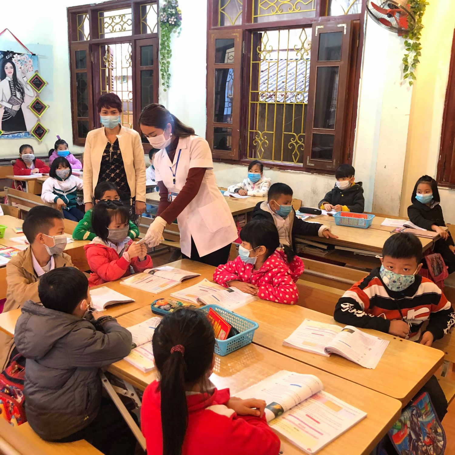 Nhà trường đã phát Vitamin C, thuốc nhỏ mắt, mũi cho 923 học sinh, nước sát khuẩn tay nhanh cho 24 lớp học để nâng cao sức đề kháng.