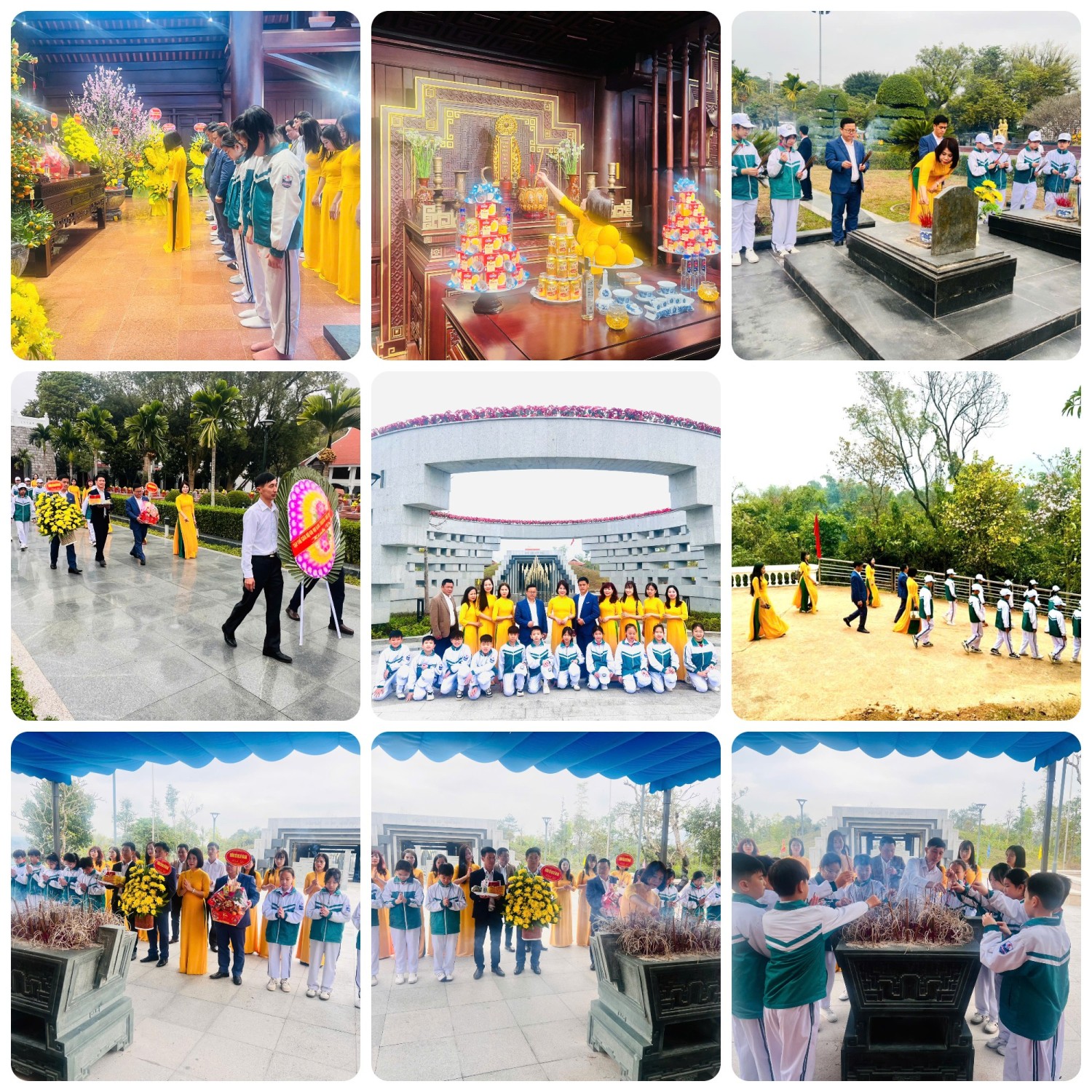 Sáng sớm, trong tiết trời se lạnh của mùa xuân, đoàn cán bộ, giáo viên và học sinh nhà trường chỉnh tề trong trang phục, thành kính chuẩn bị lễ vật, hoa tươi và những nén hương thơm. Không khí trang nghiêm bao trùm khi đoàn tiến vào khuôn viên Đền thờ Bác Hồ. Trước anh linh của Người, tập thể nhà trường kính cẩn nghiêng mình, bày tỏ lòng biết ơn vô hạn đối với vị lãnh tụ kính yêu – người đã hiến dâng trọn đời cho độc lập, tự do của dân tộc và hạnh phúc của nhân dân. Những lời hứa quyết tâm dạy tốt – học tốt, rèn đức – luyện tài vang lên đầy xúc động, thể hiện sự tiếp nối truyền thống cách mạng vẻ vang.